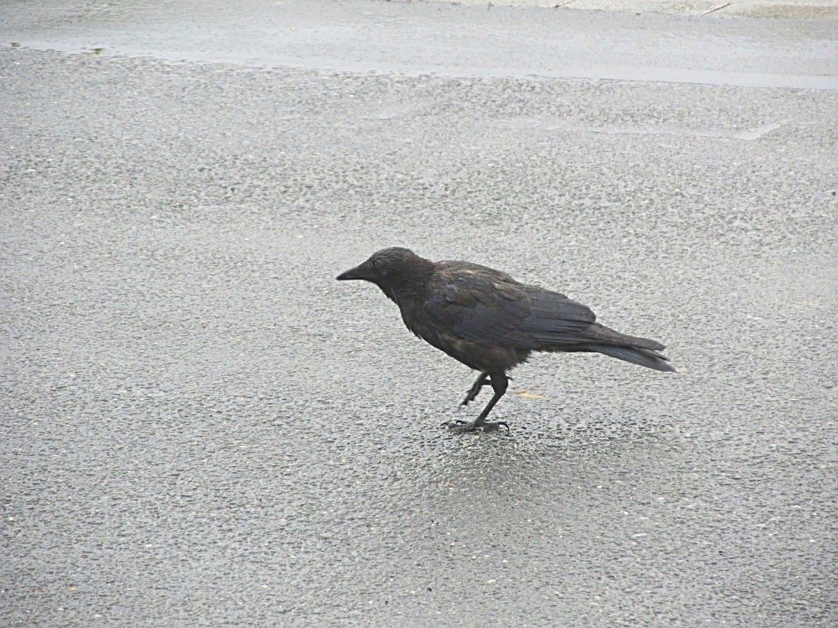 Gelgentlich flog eine Krähe auf einen Dachfirst.