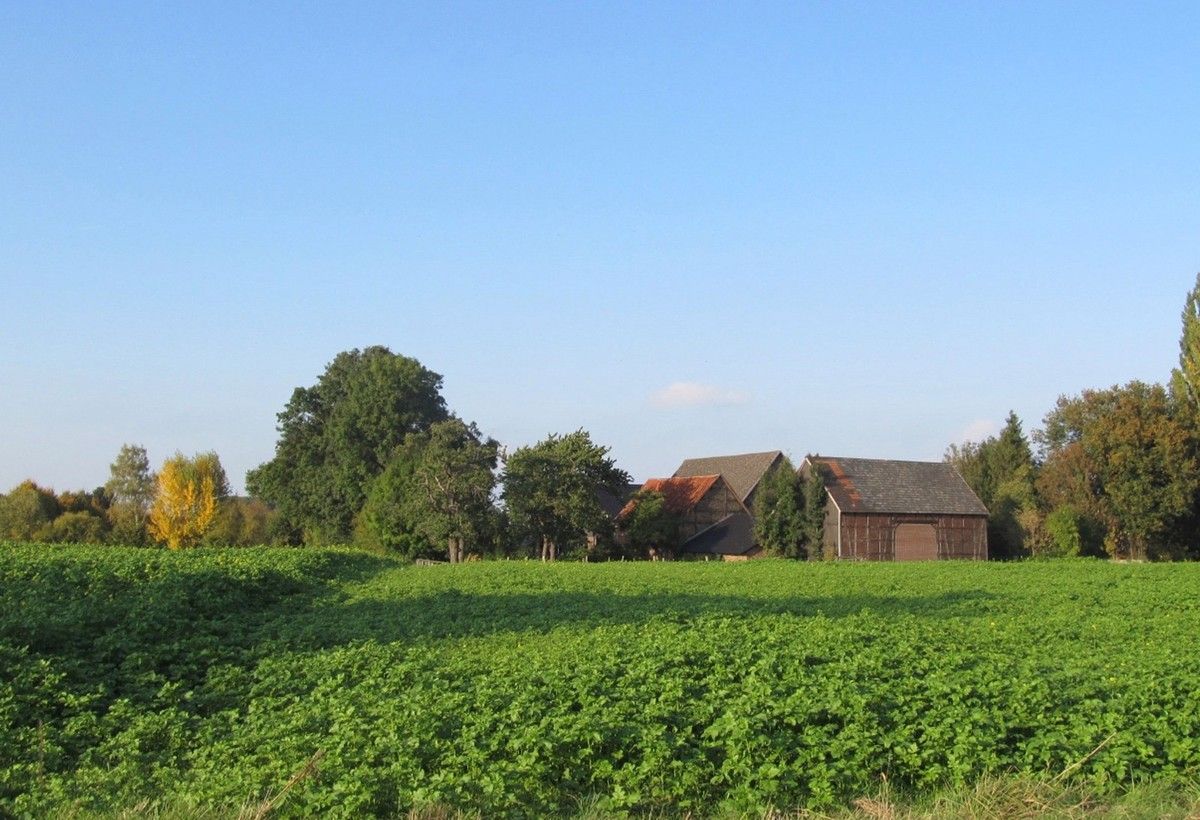 Einige Meter abseits der Straße landete er und stakste durch die Wiese. Im Hintergrund des Bildes ist die Soester Börde zu sehen, die einen Teil des Haarstrangs bildet.