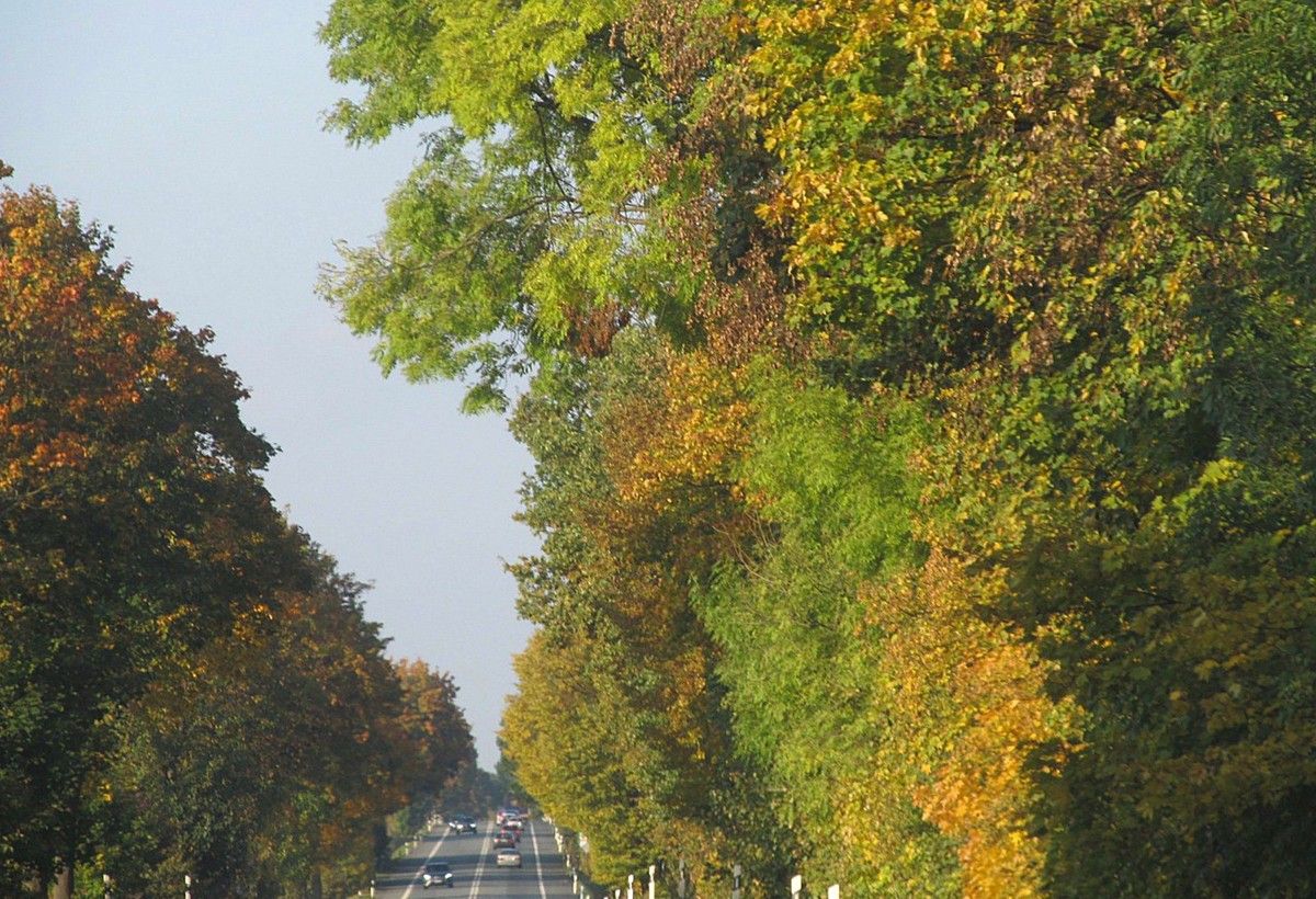 Rechts und Links der Straßen, die sich durch eine ganz leicht hügelige Landschaft ziehen, überwiegt noch das Grün.