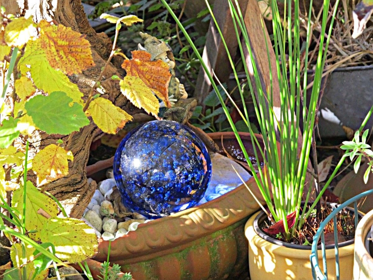 Kleine Lichtblicke Veröffentlicht auf 8. November 2016 von Szintilla blaue Glaskugel zwischen Pflanzen Werbung Ab und zu gibt es die kleinen Licktblicke, denn noch blickt die Sonne gelegentlich durch die grauen Wolken, aber seit gestern Abend regnet es.