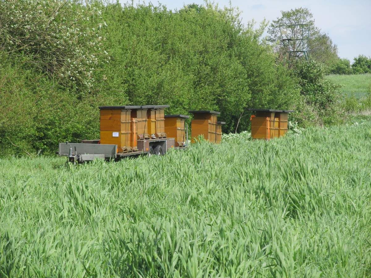 Diese Wander-Bienenkästen fotografierte ich schon vor einigen Wochen, aufgestellt waren sie in der Nähe von Rapsfeldern. Es gibt hier in der näheren Umgebung viele Menschen die inzwischen eigene Bienenvölker besitzen, Nachbarn die Bienenkästen in ihren Gärten haben. Bisher habe ich es versäumt ihn zu probieren, das sollte ich unbedingt nachholen.