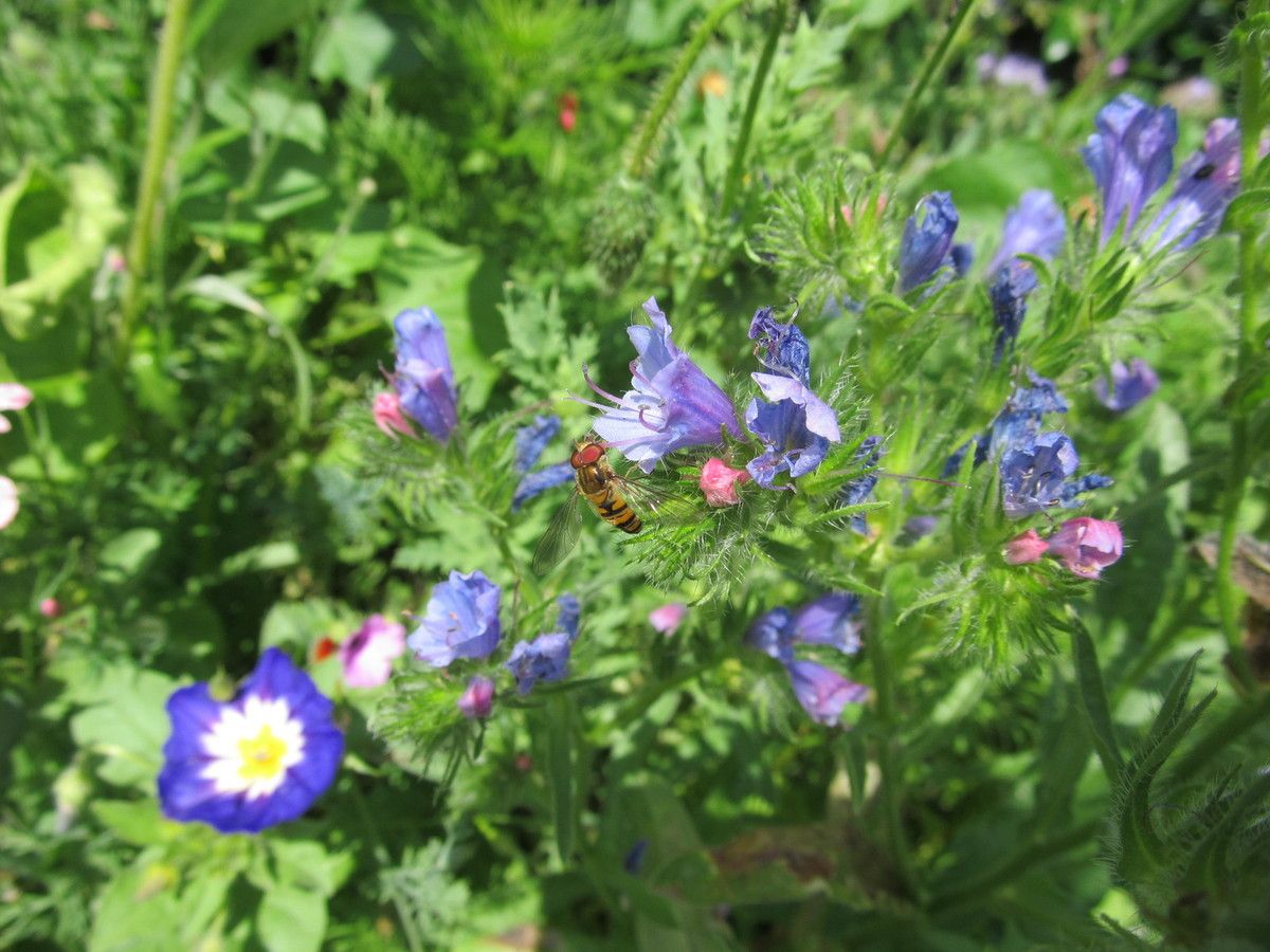 Der Natternkopf ist eine blaublütige Pflanze mit kleinen Blüten, die fast wie kleine Glöckenblumen ausschauen. Auch diese zweijährige Staude steht in der ausgesäten "wilden Wiese".
