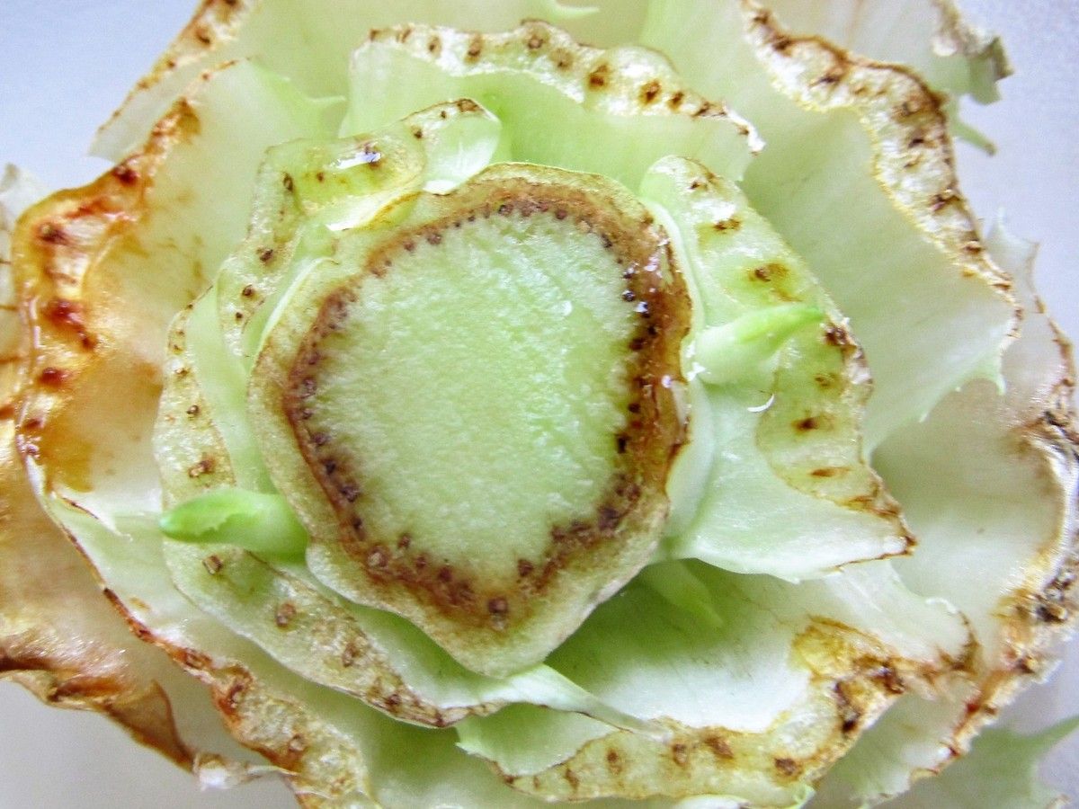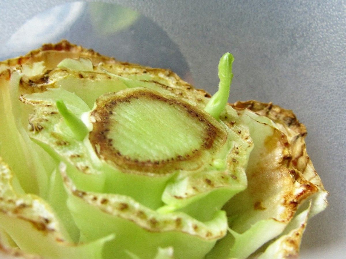 Auch eine Kohlrabistrunk treibt weiter Blätter, die ich im Salat und auch in Suppen verwende.