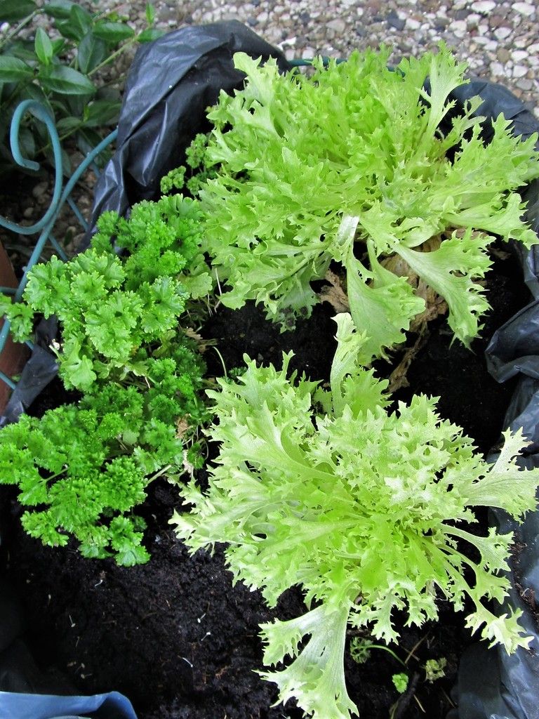 Hier sieht man einen bereits "geklonten" Salat, im Korb neben Petersilie.