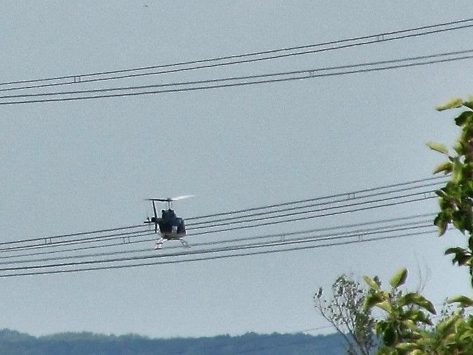 Alljährliche Leitungsüberprüfung aus der Luft. Präzionsarbeit mit dem Hubschrauber. Ich finde es erstaunlich wie dicht der Pilot an die Leitungen heranfliegt und sie im ganz langsamen Flug entlang fliegt.