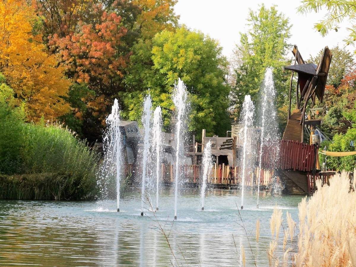 Am beeindruckendsten sind sicher immer Springbrunnen, besonders, wenn sie sich mit einer so farbenprächtigen Kulisse schmücken.
