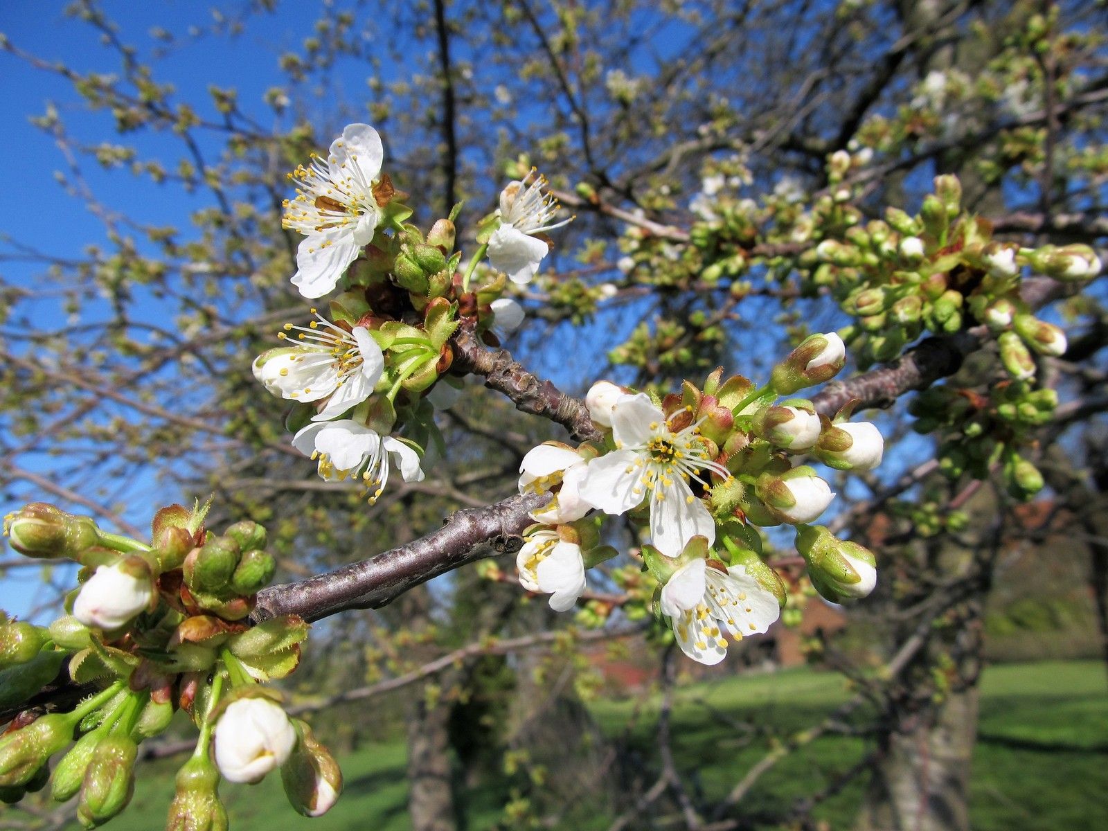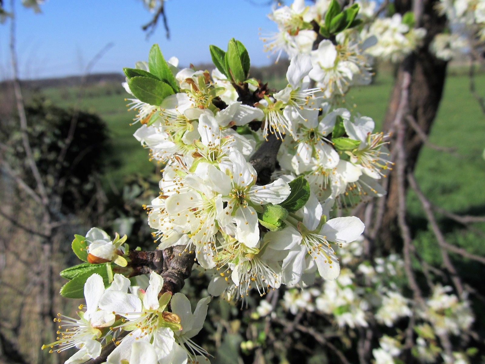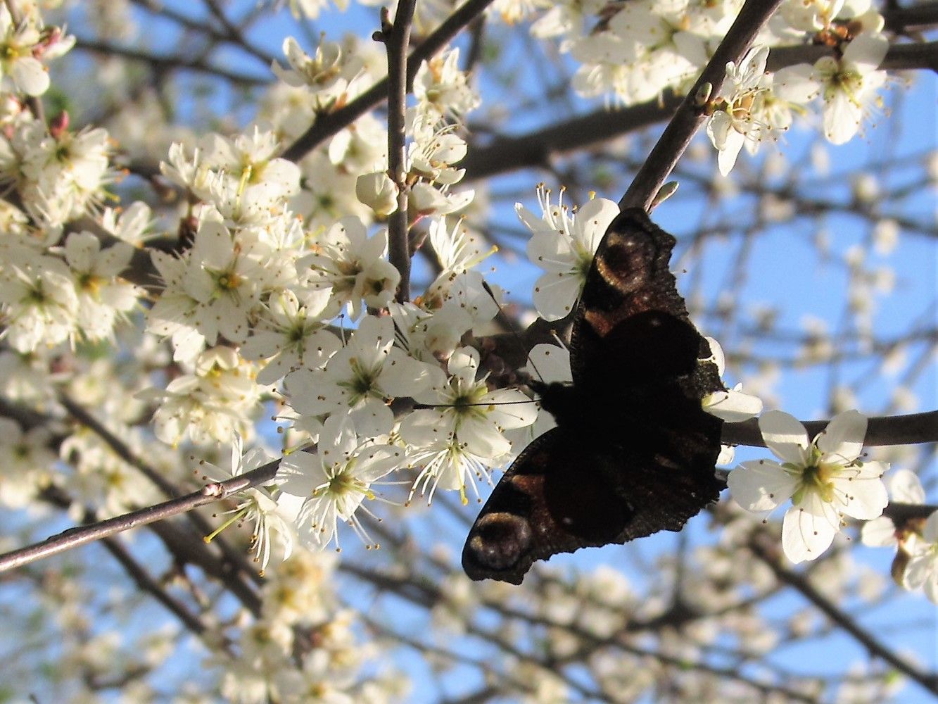 Der Ostersonntag lud mit seinem wunderbaren Frühlingswetter zum Spaziergang ein. Die Obstbaumblüte sorgte vor blauem Himmel für zauberhafte Fotos. Nicht nur Bienen und Hummeln tummelten sich in dem Blütenmeer, auch ein zerrupftes, vorjähriges Tagpfauenauge fand sich zum Nektar naschen an einem Baum ein.