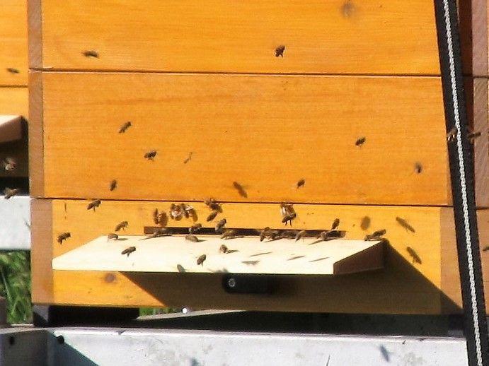 Es wird emsig in den Stock rein und rausgeflogen und auf den Waben ein Schwänzeltänzchen aufgeführt. Wie schön, dass es in diesen unruhigen Zeiten in der Natur Prozesse gibt, die unverändert wunderbar funktionieren.