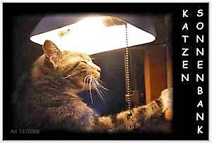 Wie wäre es mal mit der Erfindung eines Katzensolariums? Neben Diamanthalsbändern, Regenmäntelchen, auf Silbertellern serviertem Thunfisch, garniert mit einem Blättchen Petersilie, ist die Wellness-Oase für gestresste Haustiere bestimmt eine Marktnische ... Ein Solarium würden meine zwei mit Sicherheit ausdauernd genießen.